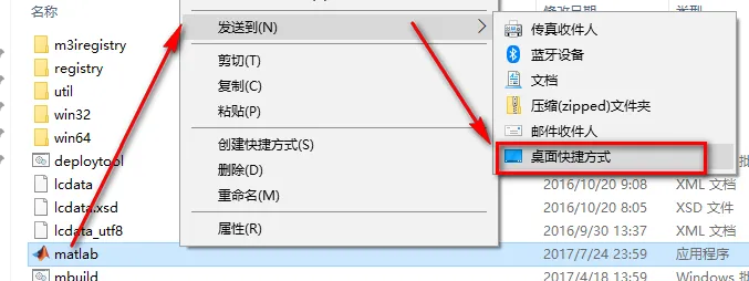 26、找到并选中matlab,鼠标右击选择发送到,选择“桌面快捷方式”