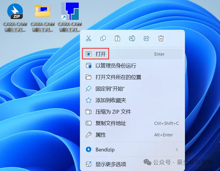 13、回到桌面,右键桌面上的【CAXA CAM制造工程师 2020软件图标】,点击【打开】