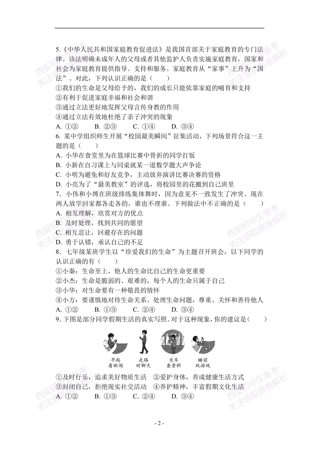最新真题,免费下载!西安期末:【25-26西光中学】七上期末考试,道德与法治试题,试卷+完整版答案,!