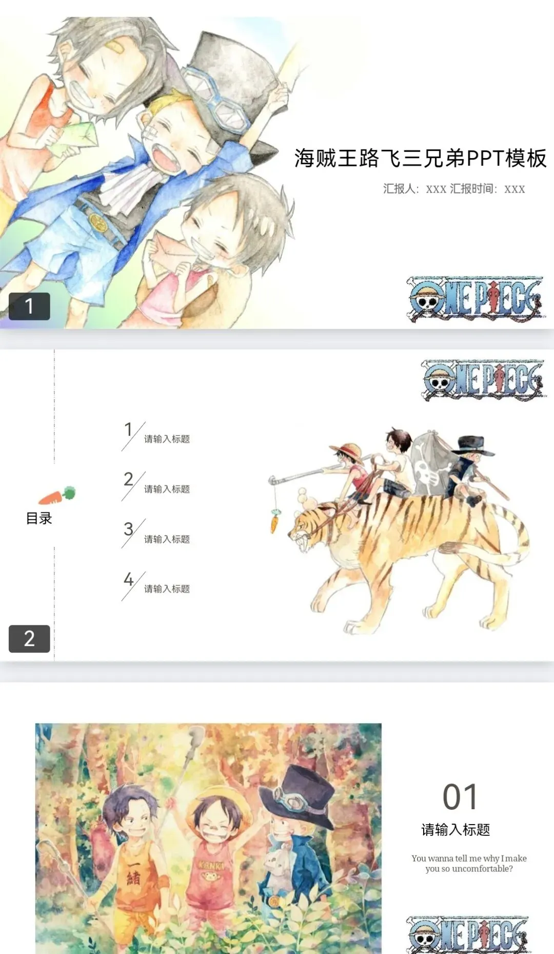 模板涵盖治愈系小动物、热门动漫IP元素、清新二次元画风,色彩鲜亮不杂乱,排版简洁有设计感,文字框、图表、图标全是卡通定制款,不用自己费心设计,替换文字和图片就能直接用~