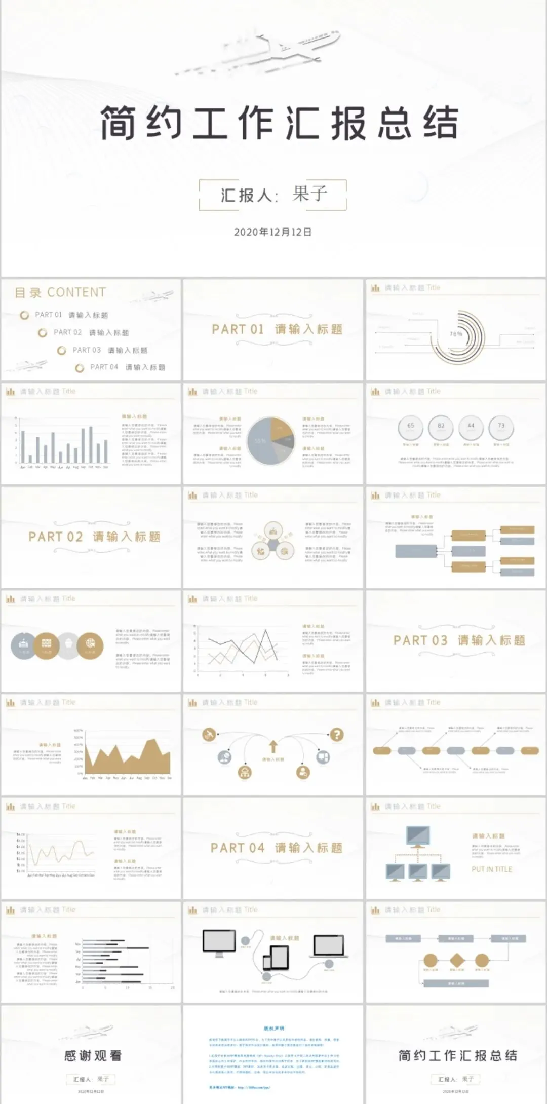 100+套简约大气风格,适用于年终总结,工作总结,个人述职