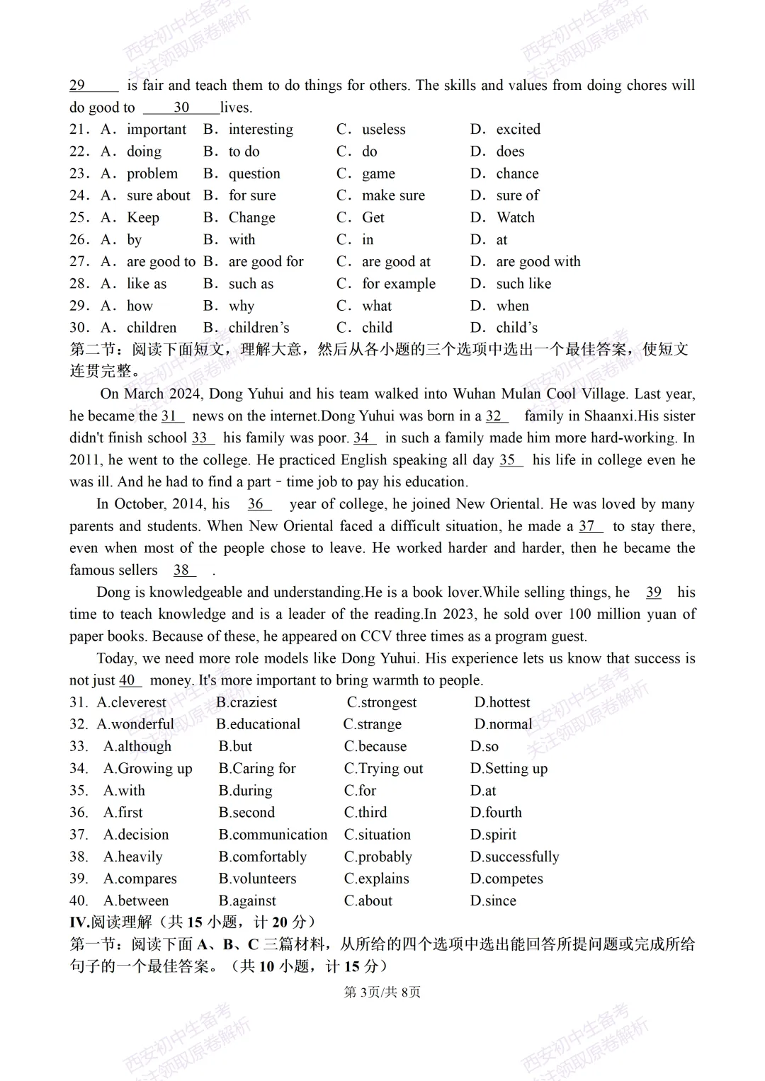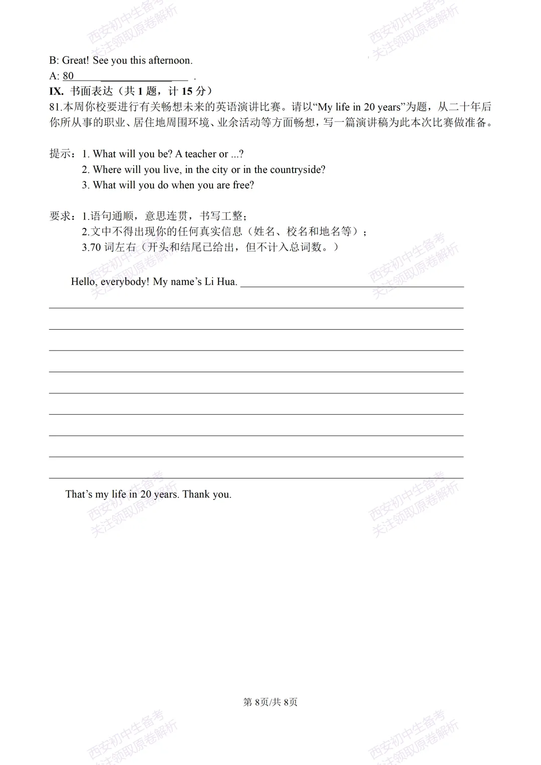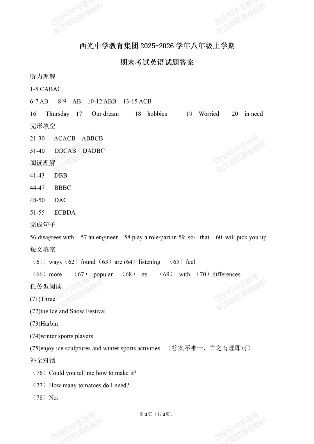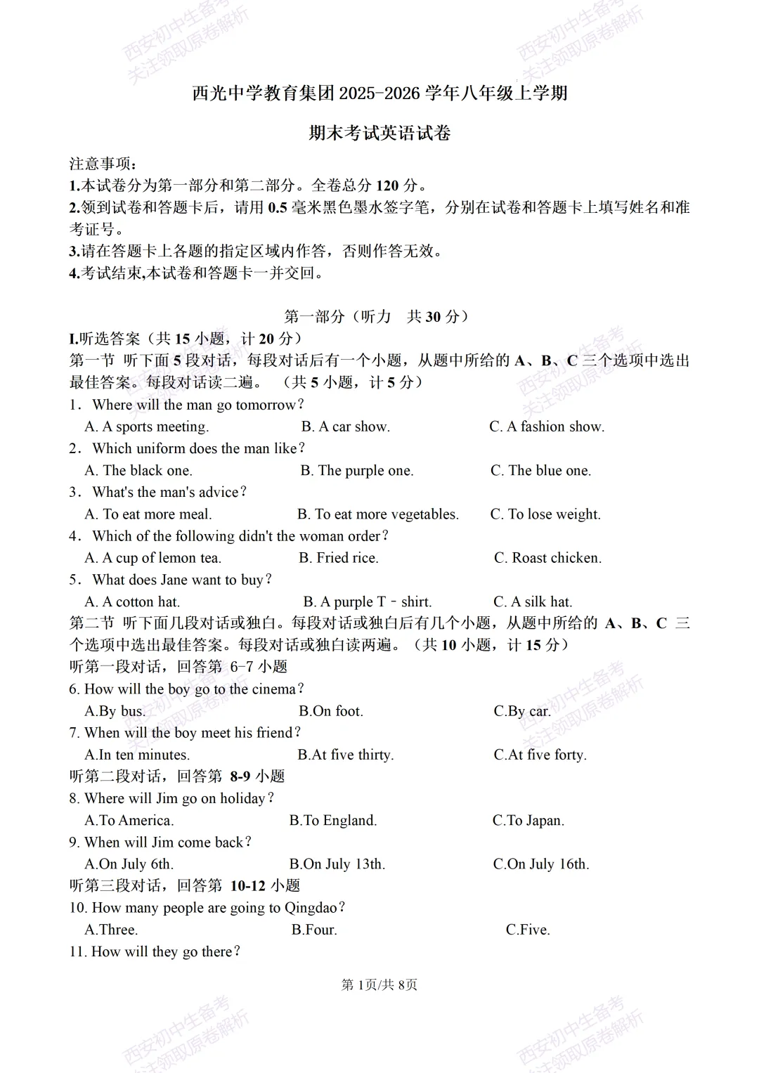 >含听力!免费下载!西安期末:【25-26西光中学】八上期末考试,英语试题,试卷+完整版答案,!