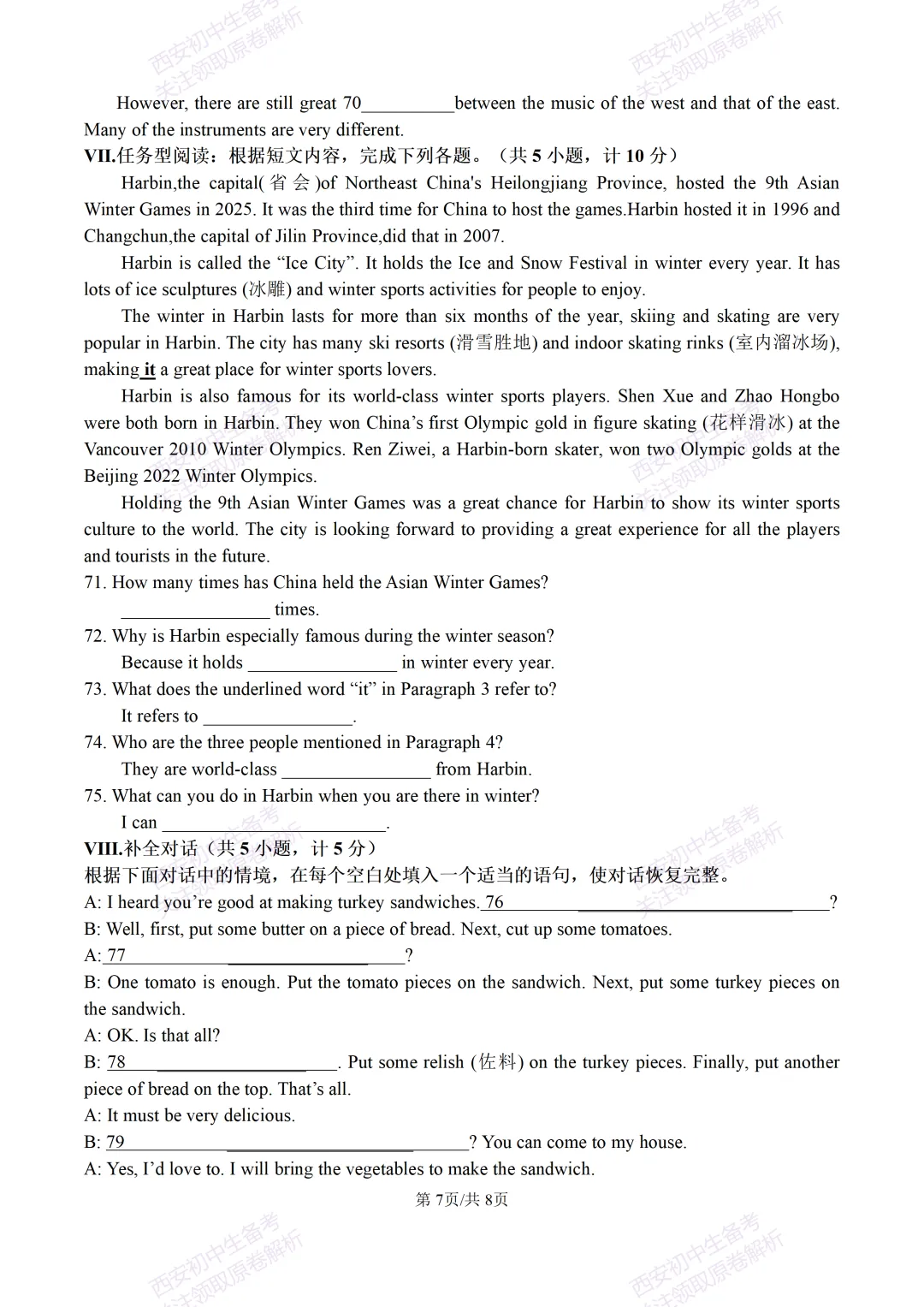 含听力!免费下载!西安期末:【25-26西光中学】八上期末考试,英语试题,试卷+完整版答案,!