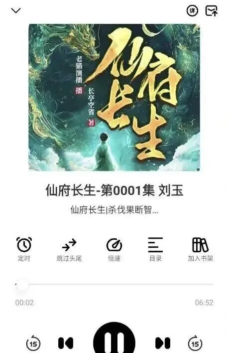 - 资源:10万+小时内容,含小说、评书、广播剧等,日更200+部,多为真人主播演绎。