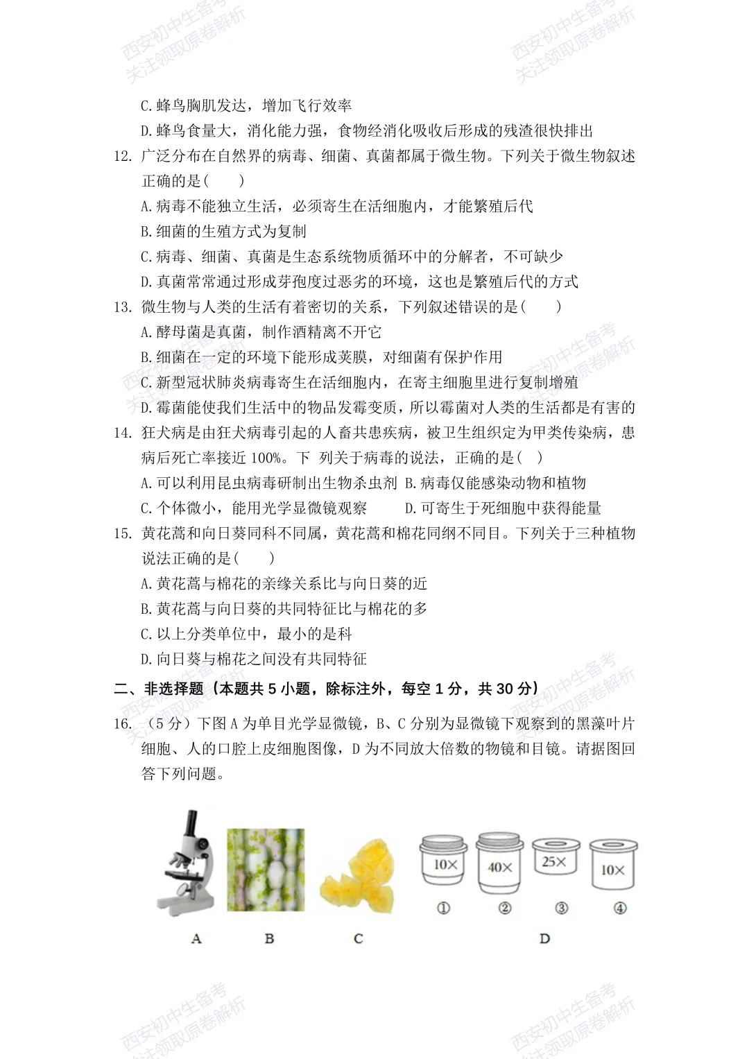 最新真题,免费下载!西安期末:【25-26西光中学】七上期末考试,生物试题,试卷+完整版答案,!