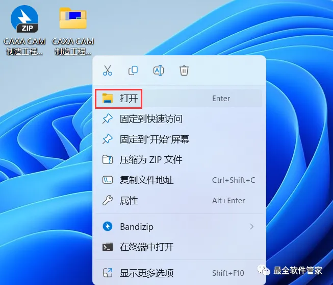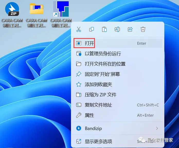 14、回到桌面,右键桌面上的【CAXA CAM制造工程师 2022软件图标】,点击【打开】