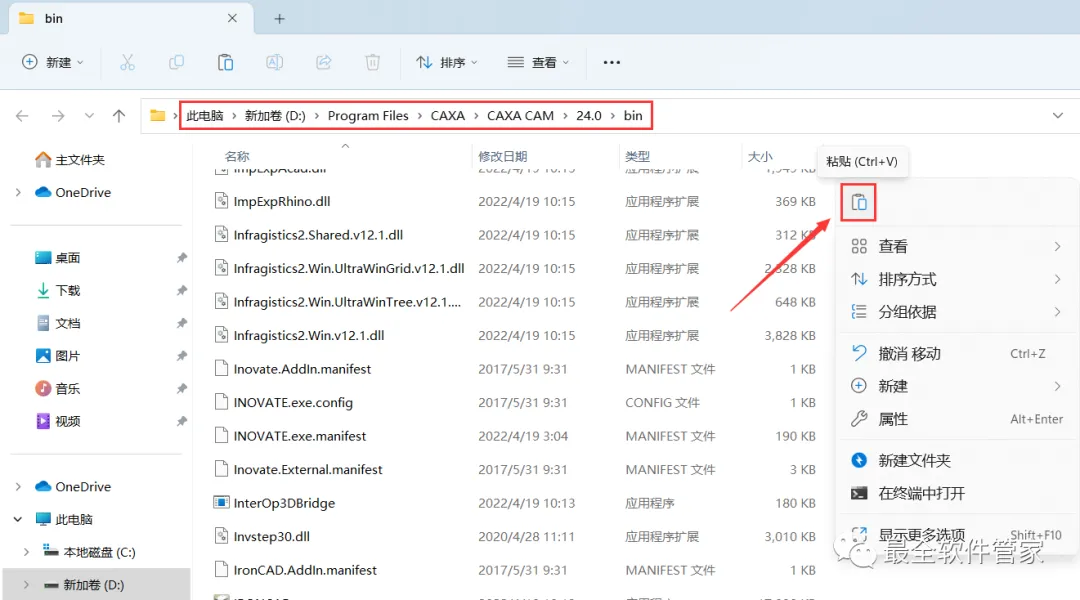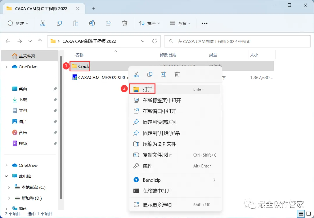9、回到CAXA CAM数控车 2022文件夹,找到【Crack】文件夹,右键【打开】它