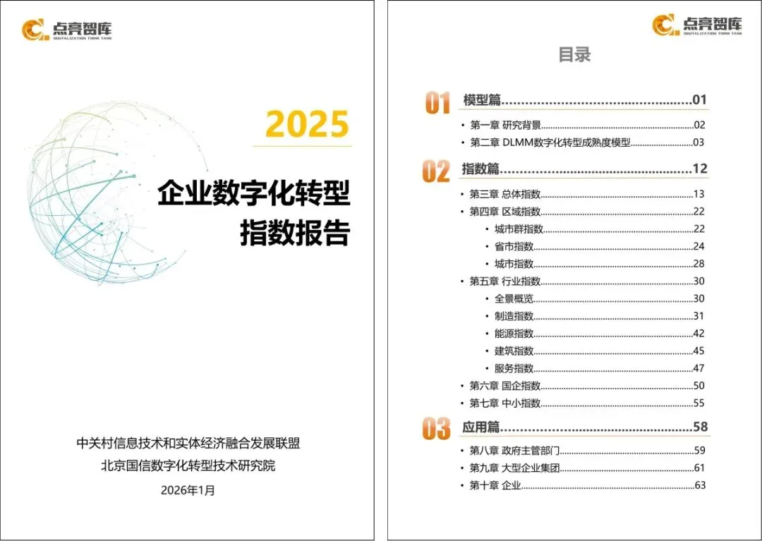 为此,中信联&点亮智库特调研编制了《企业数字化转型指数报告(2025)》,希望能够为政府、行业组织、企业、服务商等各方提供有价值的参考,助力中国企业在数字化转型浪潮中稳健前行。
