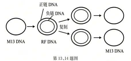 M13是专一侵染大肠杆菌的单链DNA噬菌体,其DNA含6407个碱基。在侵染过程中,M13的DNA和部分蛋白质会同时进入宿主细胞。M13DNA复制过程如图所示。增殖产生的子代M13会从宿主细胞中分泌出来,而宿主细胞仍然能继续生长和分裂。