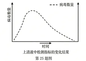 (2)画图略(3分,横坐标为时间,纵坐标为检测指标,病毒数量曲线先升后降,抗体浓度曲线后升并维持一定水平)