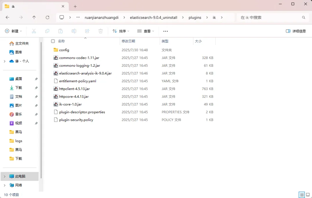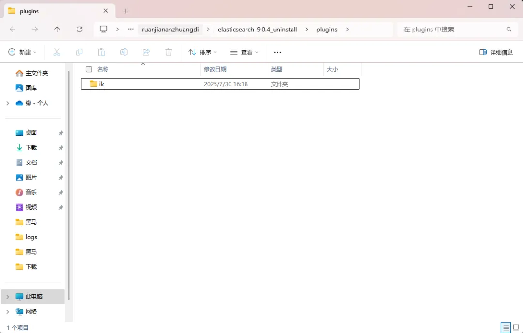 1. 在 ElasticSearch 安装路径下的 plugins 目录下创建名称为 ik 的子目录3. 重启 ElasticSearch,在启动日志中查看插件是否生效