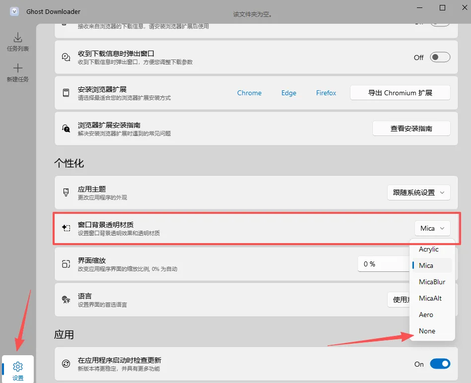 首次进入,如果你觉得界面太透明看不清,参考以下图片可以在设置里把背景材质改成None,就能看清了。软件无需登陆,没有任何限制,打开就是完全体,所有功能就是为了下载而生,你只需要点击“新建任务”,把链接粘贴进去,即可开始你的高速下载,这种没有弹窗干扰、没有诱导付费的体验,真的很爽。