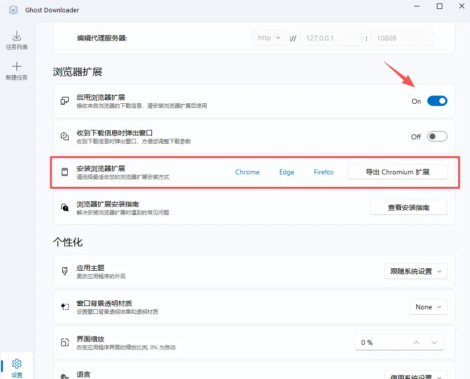 使用体验还是很不错的,特别是这个“浏览器扩展”功能,它支持Chrome、Edge、Firefox等主流浏览器,安装插件后,网页上的下载任务会自动被接管,不需要每次都手动复制链接,特别的棒,喜欢的朋友可以好好体验看看。