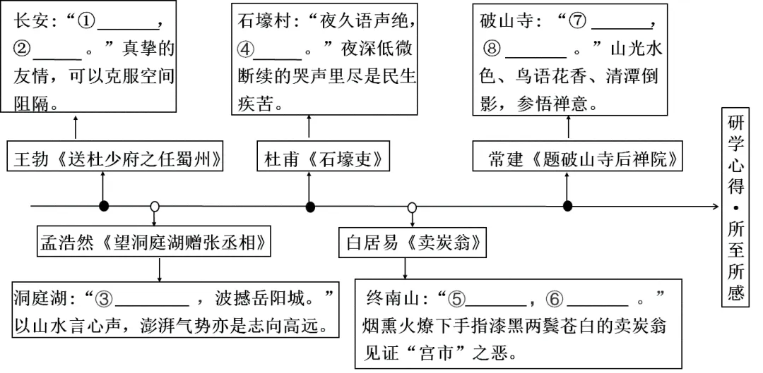 2. 古诗词目前成为研学的生动注解。沿着唐诗地点去旅行,以研促学。填写相应诗句,知行合一。