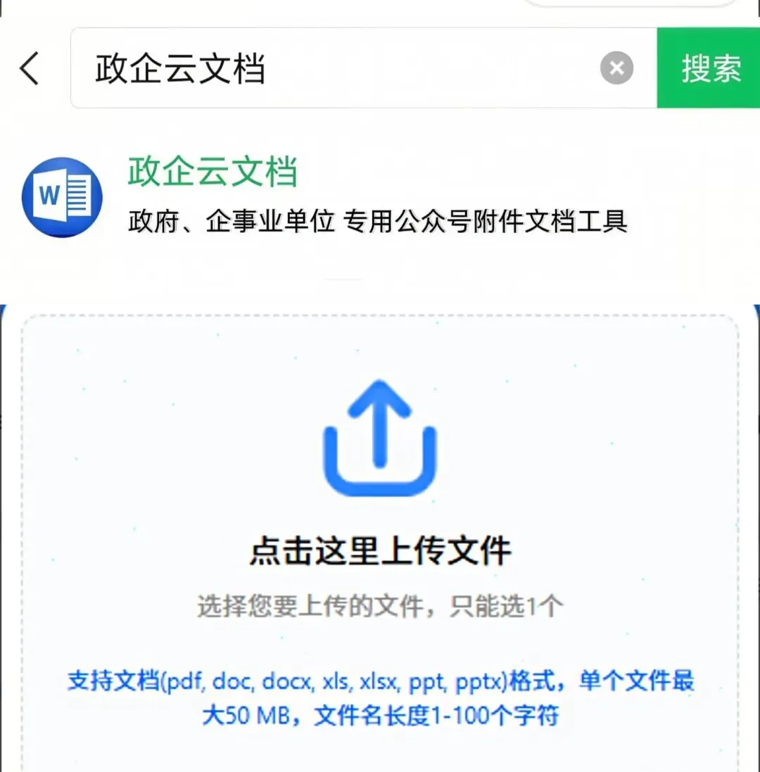 微信搜索「政企云文档」小程序(认准名字,别搜错),直接进入首页。