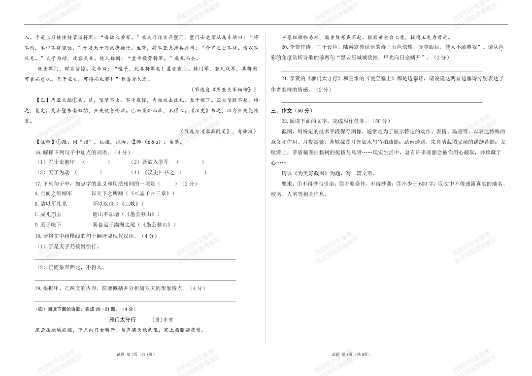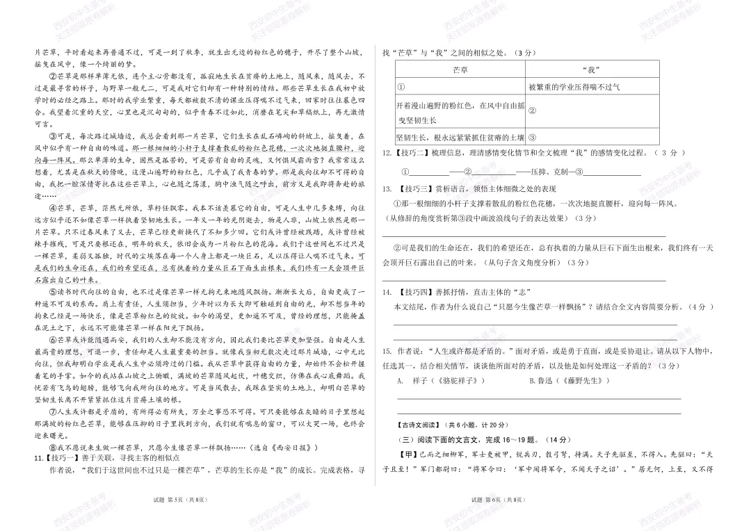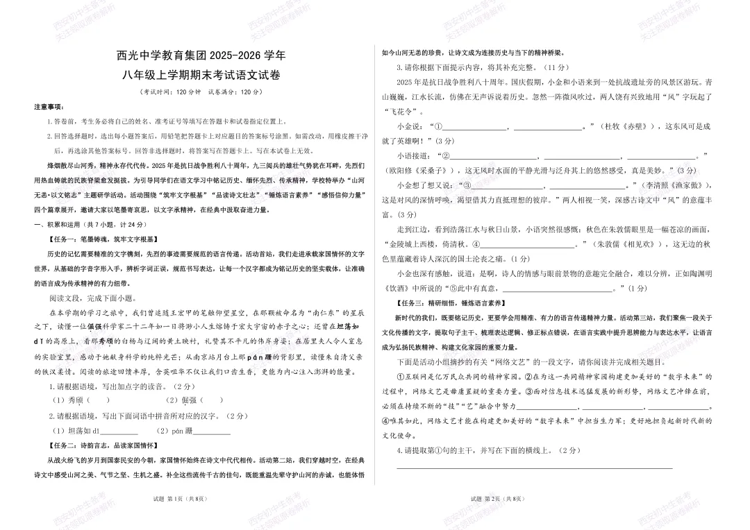 >最新真题,免费下载!西安期末:【25-26西光中学】八上期末考试,语文试题,试卷+完整版答案,!