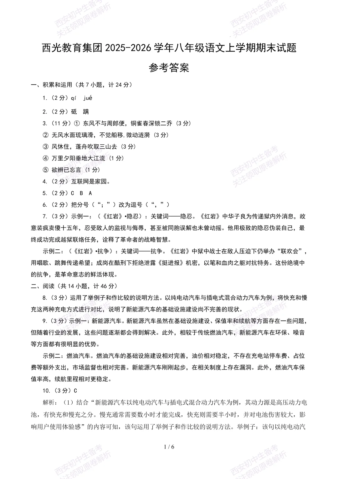 最新真题,免费下载!西安期末:【25-26西光中学】八上期末考试,语文试题,试卷+完整版答案,!