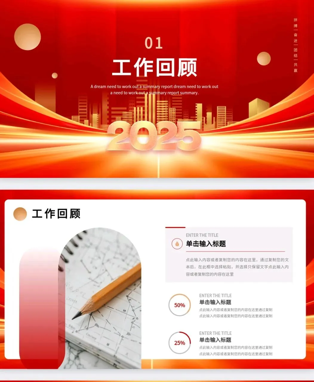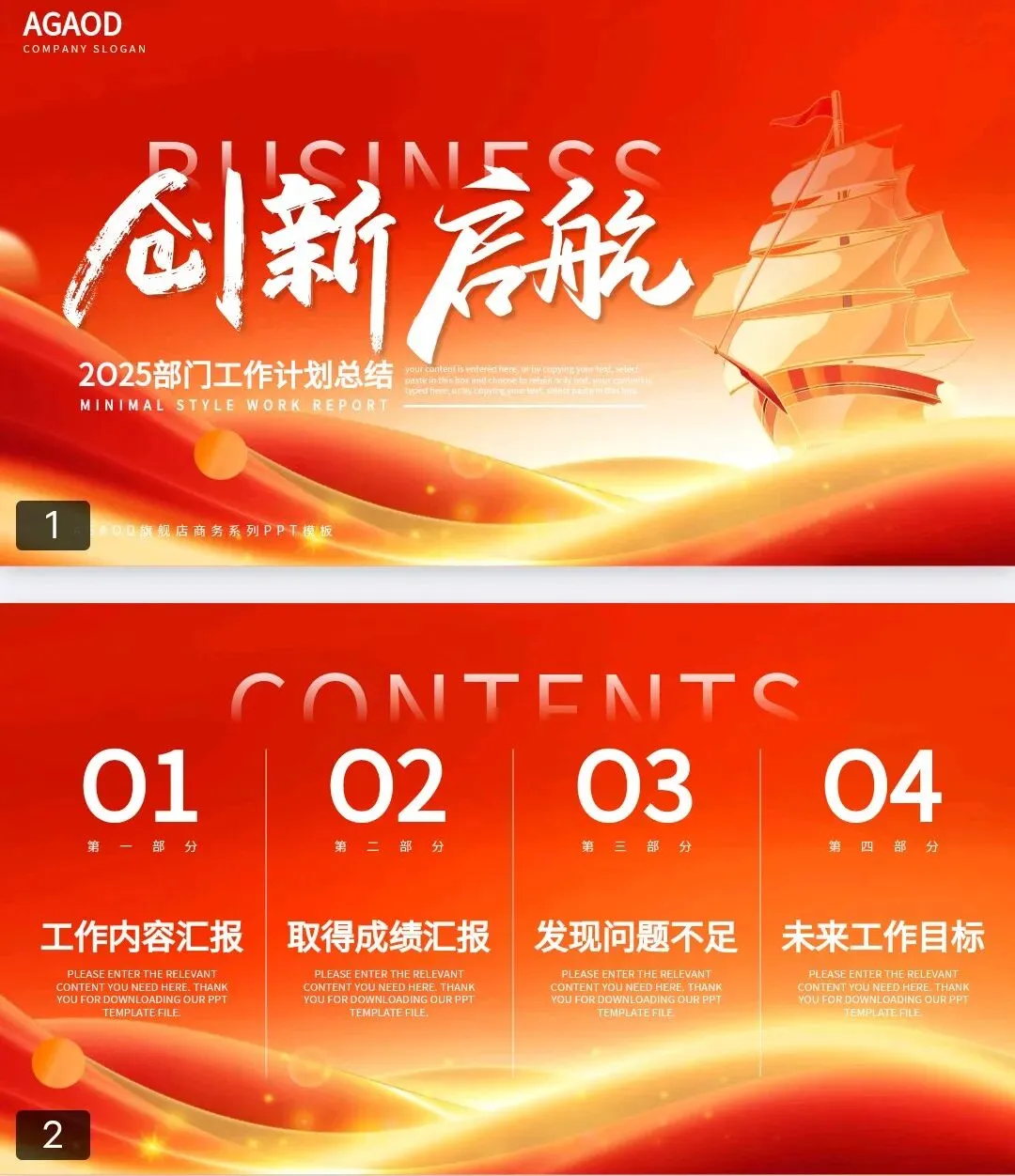 本文分享的是【红色系工作报告模板】