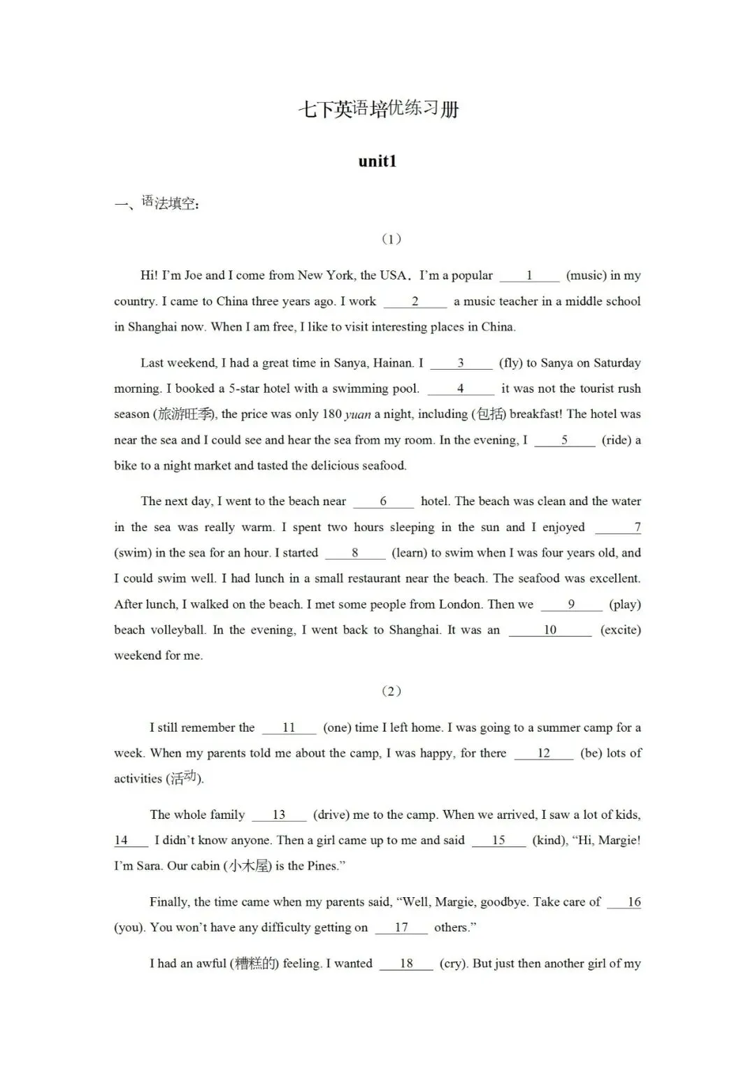 新七年级英语上、下册寒假学习必备资料包,免费分享