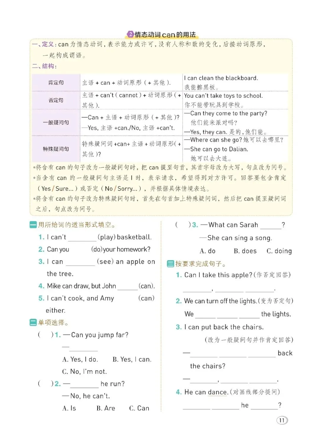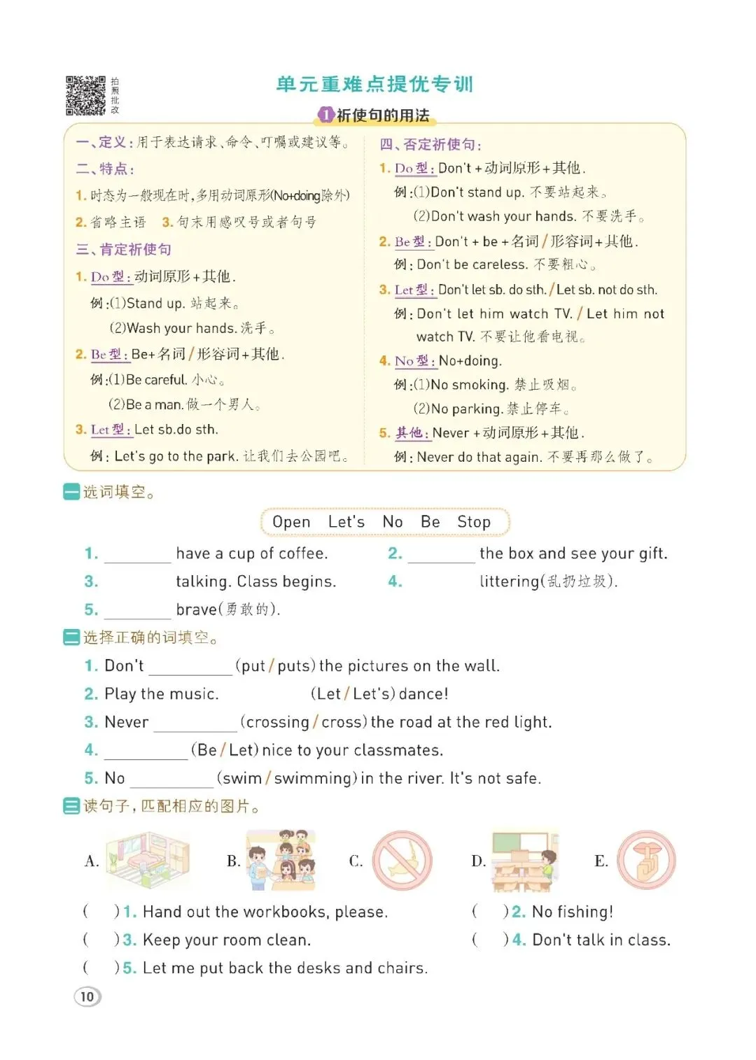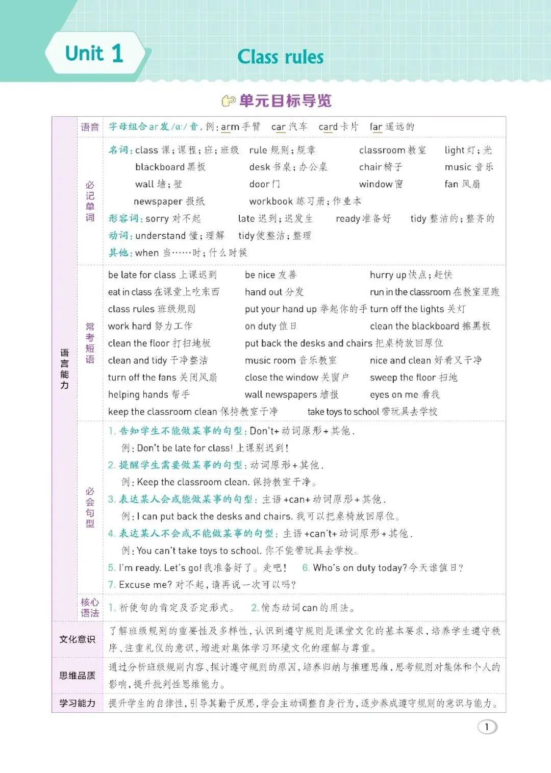 ●新四年级英语下册Unit 1素养目标导览和核心语法精讲精练(祈使句和can的用法)