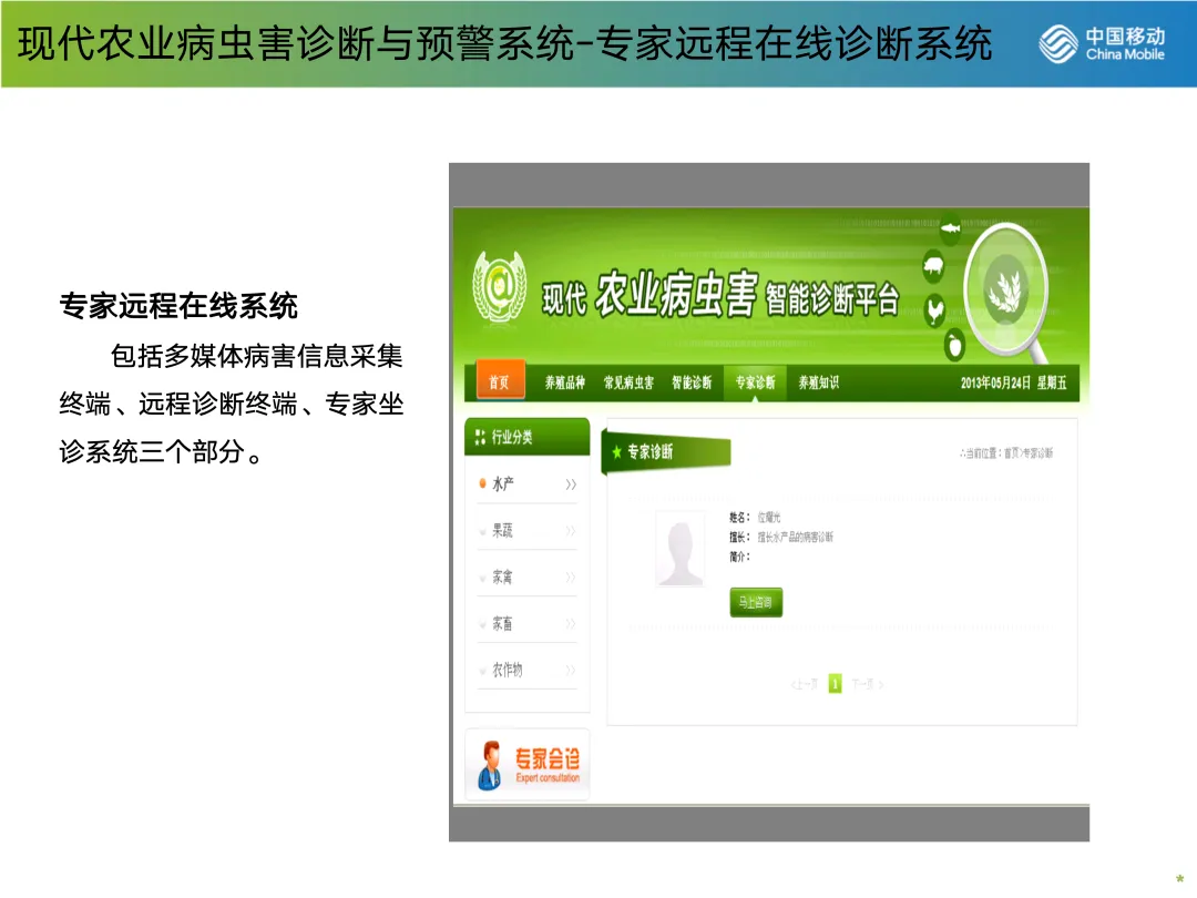 病虫害防治是农业生产的重大挑战。智慧农业系统引入了知识库与远程诊断能力,将其提升至全新水平。