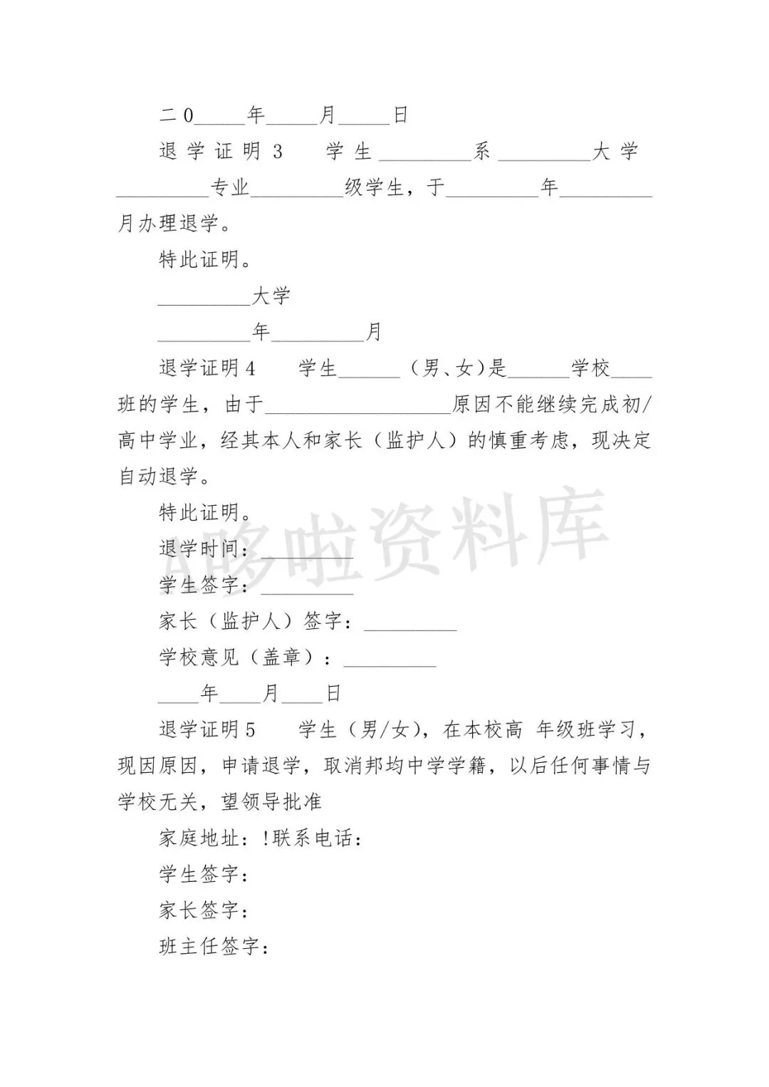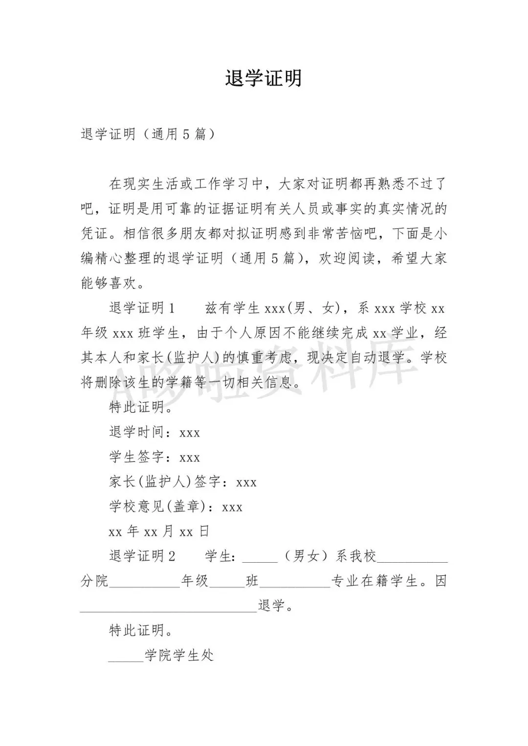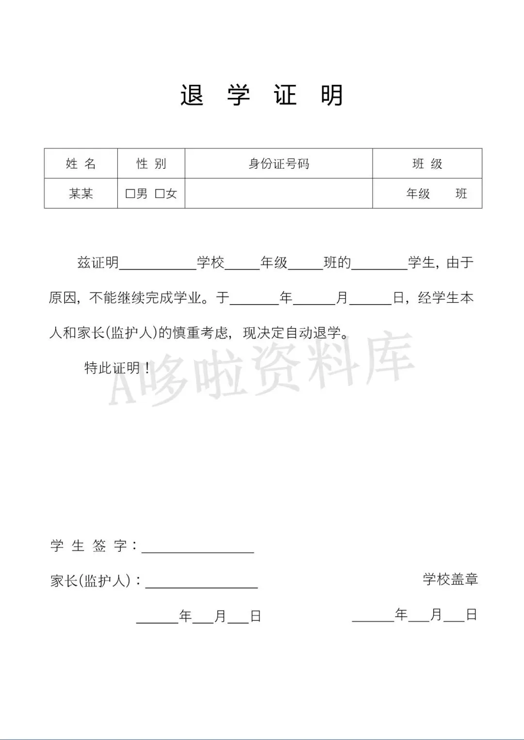 退学证明模板
