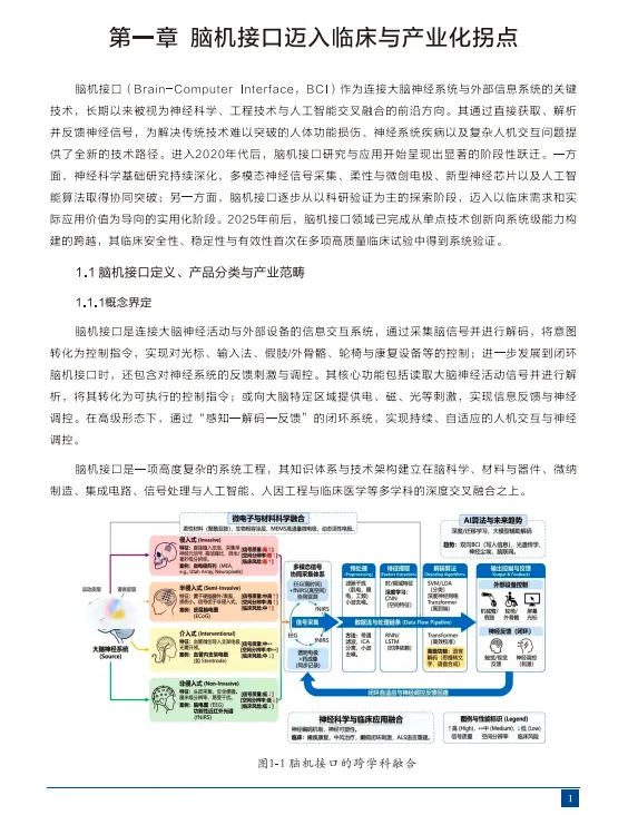 《脑机接口2025:产业元年》深度解读了脑机接口(BCI)从实验室概念验证向规模化临床与产业化应用跃迁的历史性转折。报告指出,2025年标志着该领域迈入"系统级能力构建"的新周期:技术层面,多模态神经信号融合采集与AI原生架构的突破,推动产业从单一硬件或算法竞争,转向"感知-解码-反馈"一体化能力栈的体系化工程;应用层面,严肃医疗场景(神经康复、运动与语言功能重建)率先实现突破并积累规模化验证基础,同时加速向消费级(XR沉浸式交互、智能终端扩展、认知训练)与工业级(高危作业认知负荷监测、人机协同控制)高价值场景延伸,形成三路并进的发展格局;生态层面,截至2025年12月全球及中国分别达135项与95项的临床试验注册量,叠加监管审批路径、行业标准、支付机制与产业政策的协同完善,标志着产业正从科研驱动的点状创新转向临床牵引的系统化协同。报告进一步展望,随着"脑机智能共同体"新范式的落地,脑机接口将构建人脑与智能系统持续交互、共同进化的复合体,从新质生产力的前沿赛道,迈向重塑人类生活与生产方式的关键基础设施,为经济增长新优势提供核心驱动力。
