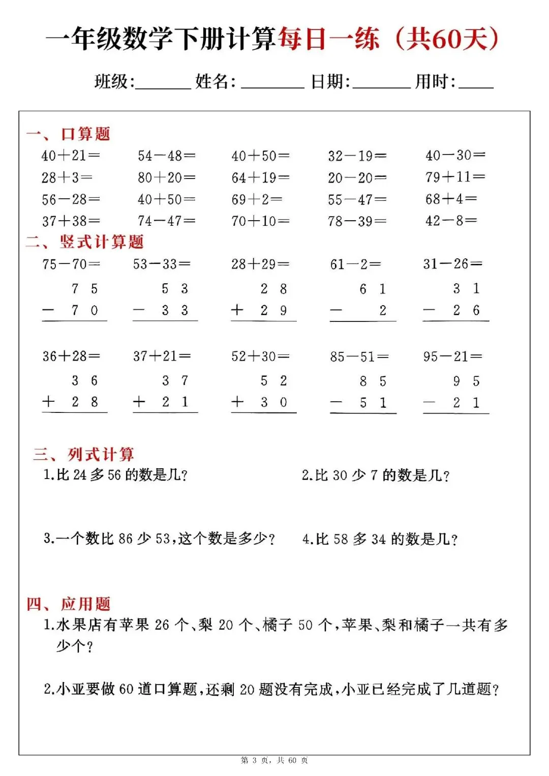 【免费下载】1-6年级数学下册《计算专项》| 可下载打印
