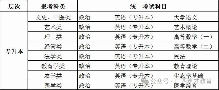 ➍成人高考科目