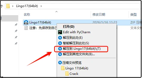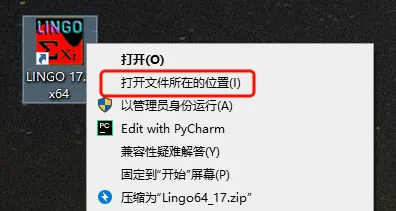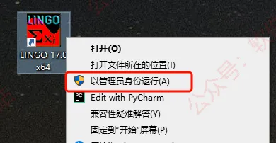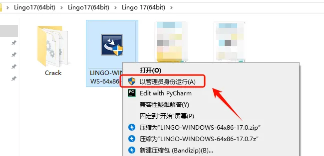 第三步:打开解压后的文件夹,找到【LINGO-WINDOWS-64x86-17.0】,鼠标右击【以管理员身份运行】。