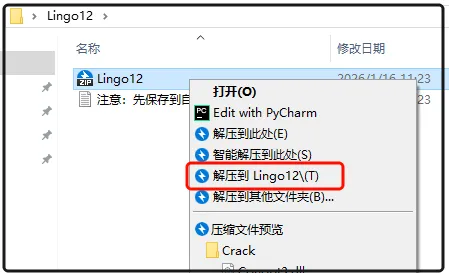 第三步:打开解压后的文件夹,找到【LINGO-WINDOWS-IA32-12.0】,鼠标右击【以管理员身份运行】。