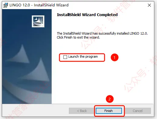 第十步:取消勾选【launch the program】,然后点【finish】。