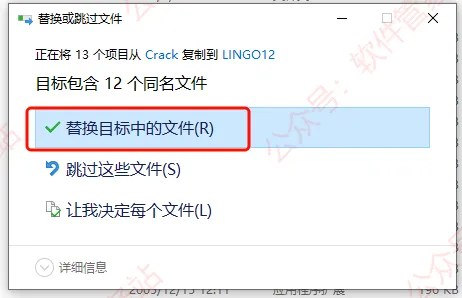 第十五步:选择【替换目标中的文件】。