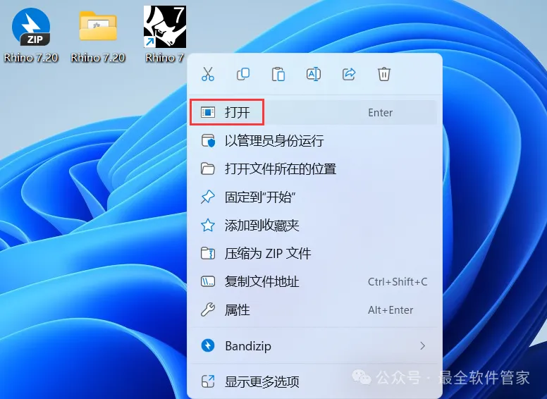 16、回到桌面,右键桌面上的【Rhino 7软件图标】,点击【打开】