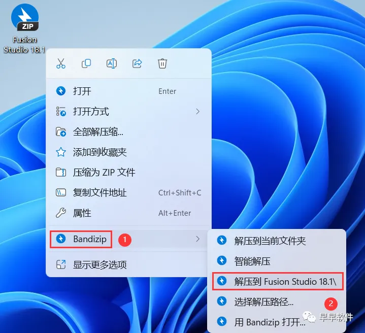 1、下载Fusion Studio 18.1软件安装包到电脑上,右键选择【解压到Fusion Studio 18.1\】
