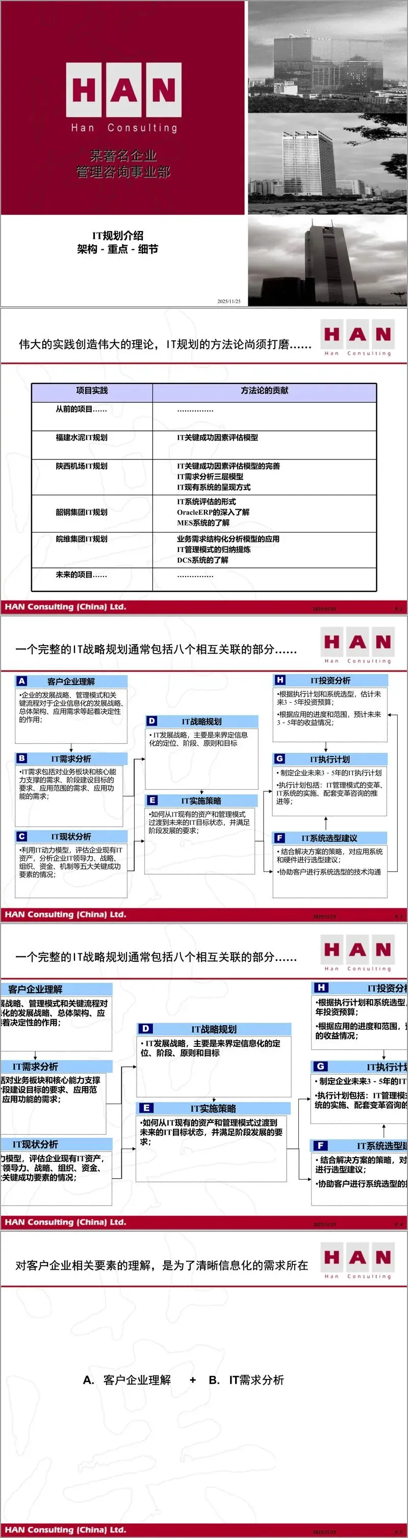 某著名企业管理咨询事业部推出的《汉普方法论IT规划培训材料》,系统性地阐述了企业IT战略规划的完整框架与实践方法。该材料以“架构-重点-细节”为主线,构建了一套从业务理解到技术落地的完整IT规划体系,强调“伟大的实践创造伟大的理论”,并指出IT规划方法论仍需在实践中不断打磨。
