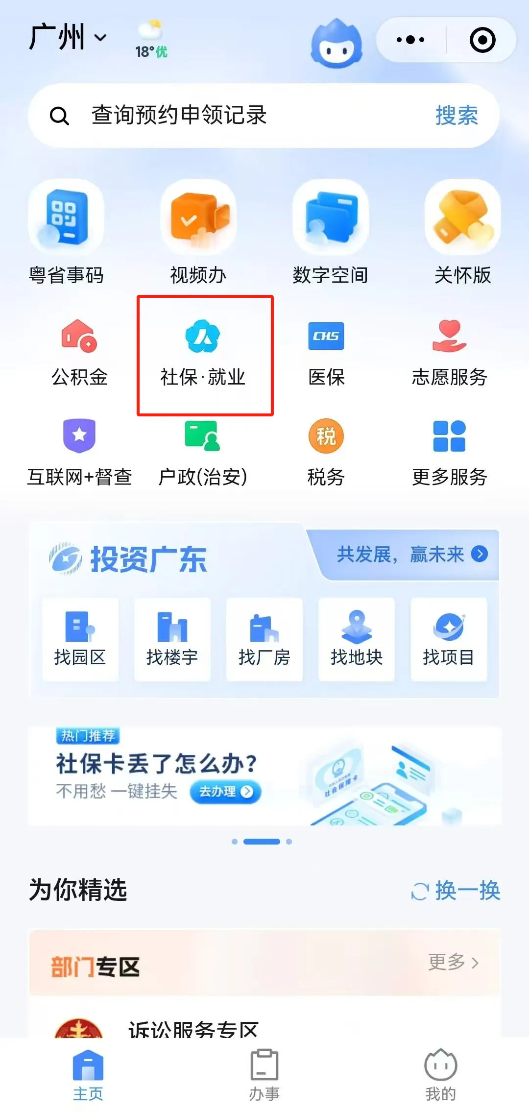 粤省事“热门服务”板块—选择“社保”—“社保凭证”—“社会保险参保证明查询”,根据页面提示操作下载。