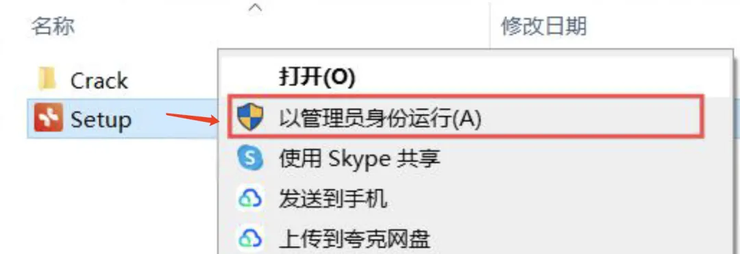 3、选中程序:Setup,右键点击:以管理员身份运行。