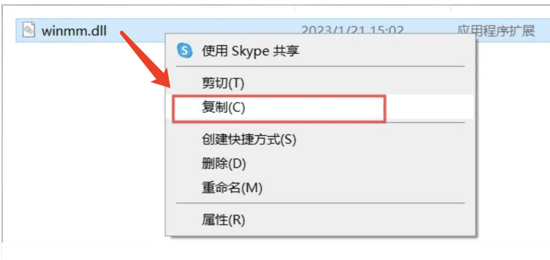复制文件:winmm.dll。