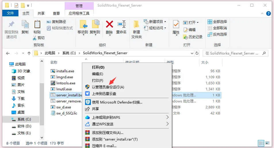 11.选中server_install,鼠标右键选择“以管理员身份运行”