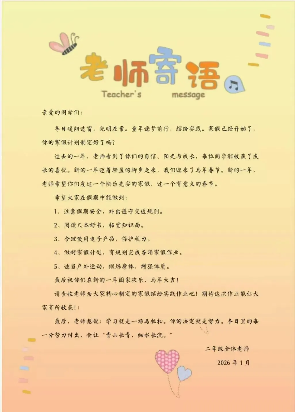 二年级马年寒假特色实践作业