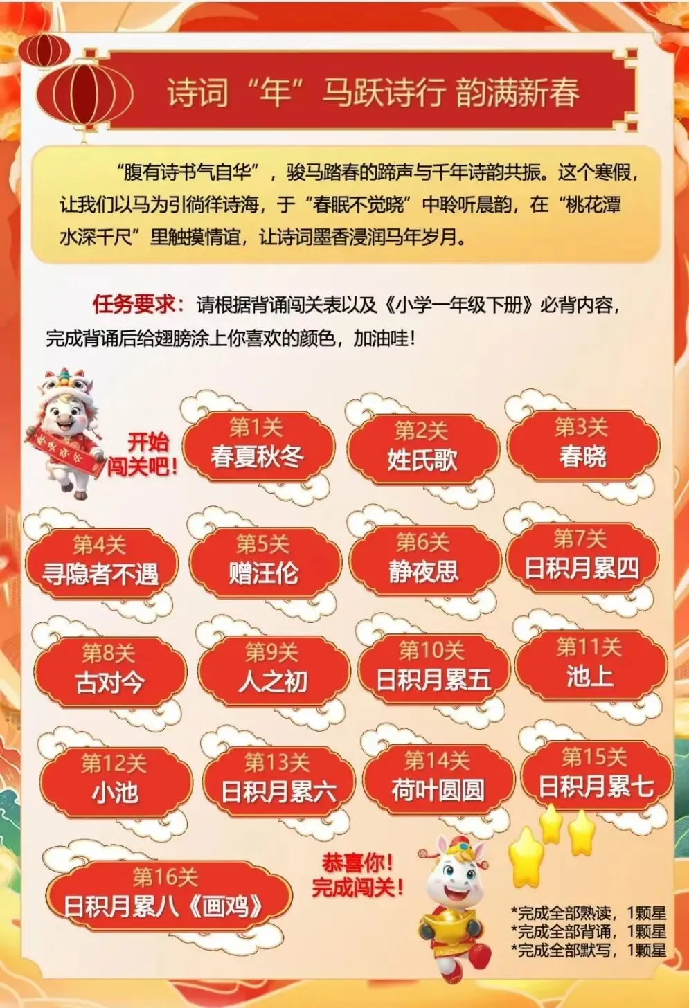 一年级马年寒假特色实践作业