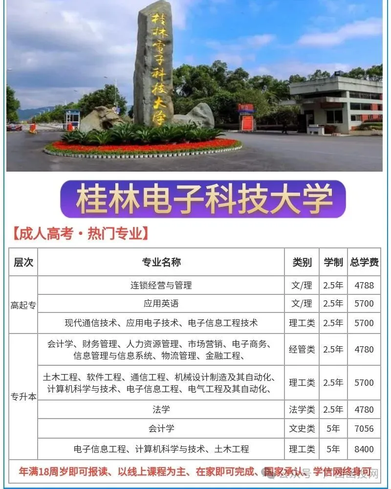 桂林电子科技大学成人高考函授招生简章