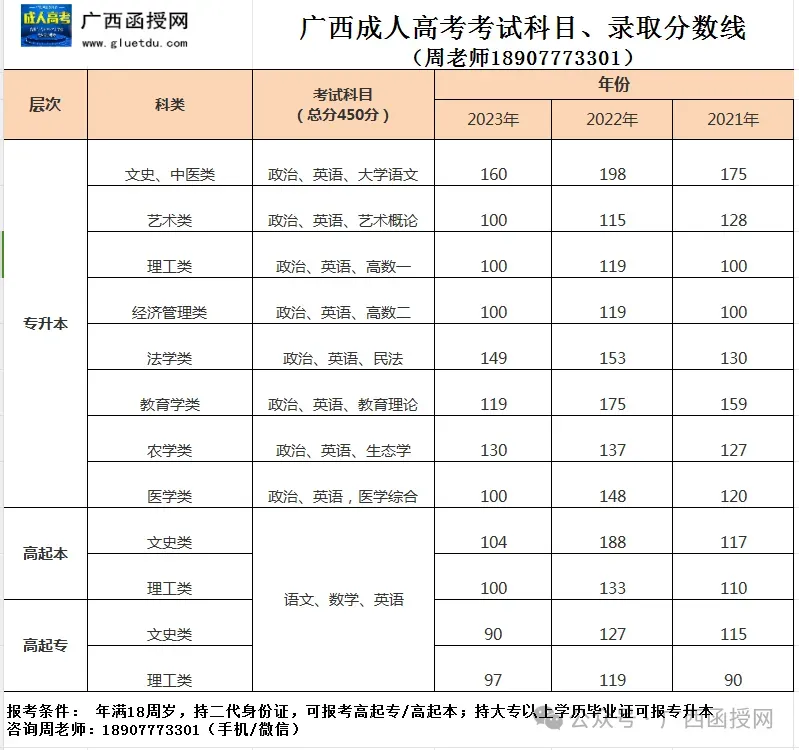 (注:报名截止时间、准考证打印、成人高考考试时间以广西招生考试院官网公布为准。)