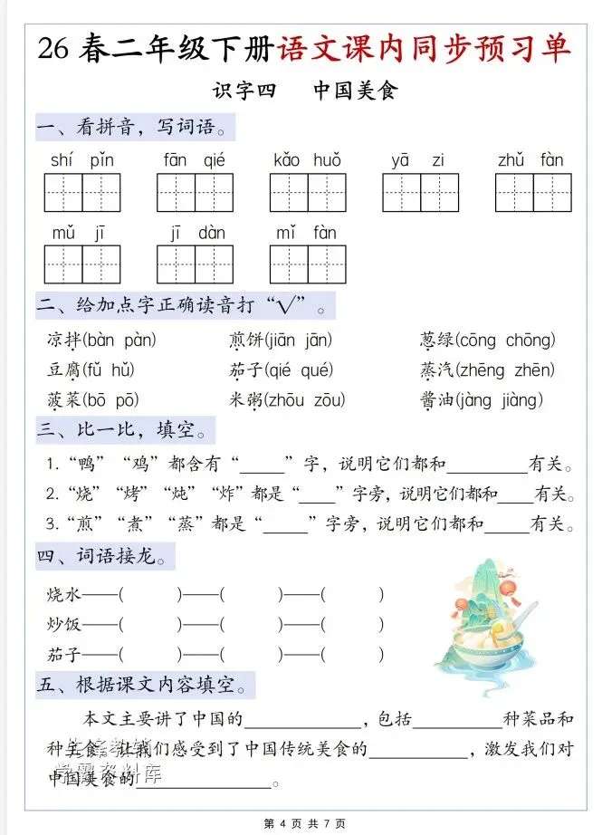 文末免费下载|26春二年级下册语文第三单元寒假预习单