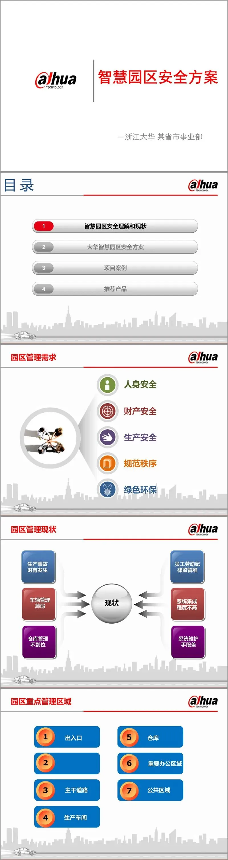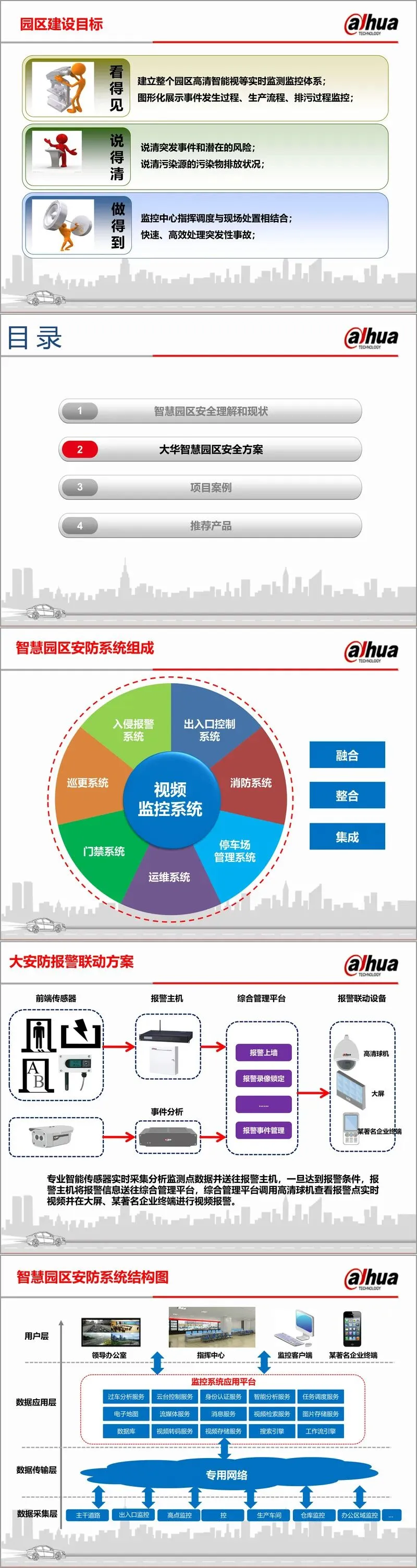 智慧园区安全方案是一套由浙江大华某省市事业部提出的综合性安防体系,旨在通过智能化、集成化的技术手段,全面提升园区的安全管理水平。该方案围绕园区管理的实际需求,从现状问题出发,系统构建了覆盖入侵报警、视频监控、门禁管理、停车场系统、消防系统、巡更系统及智能化运维等多个维度的安防架构,实现从数据采集到指挥决策的全流程闭环管理。