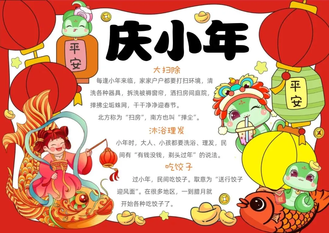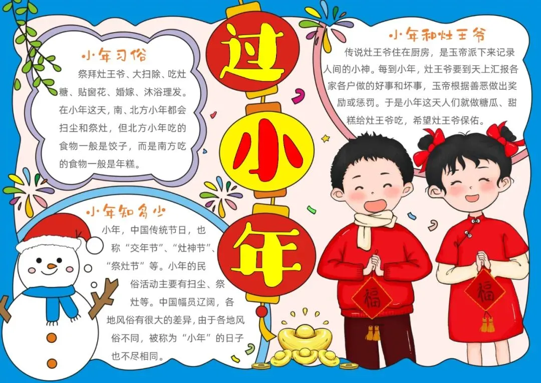 ◆本期分享:迎小年祭灶主题主题手抄报模板(10套)
