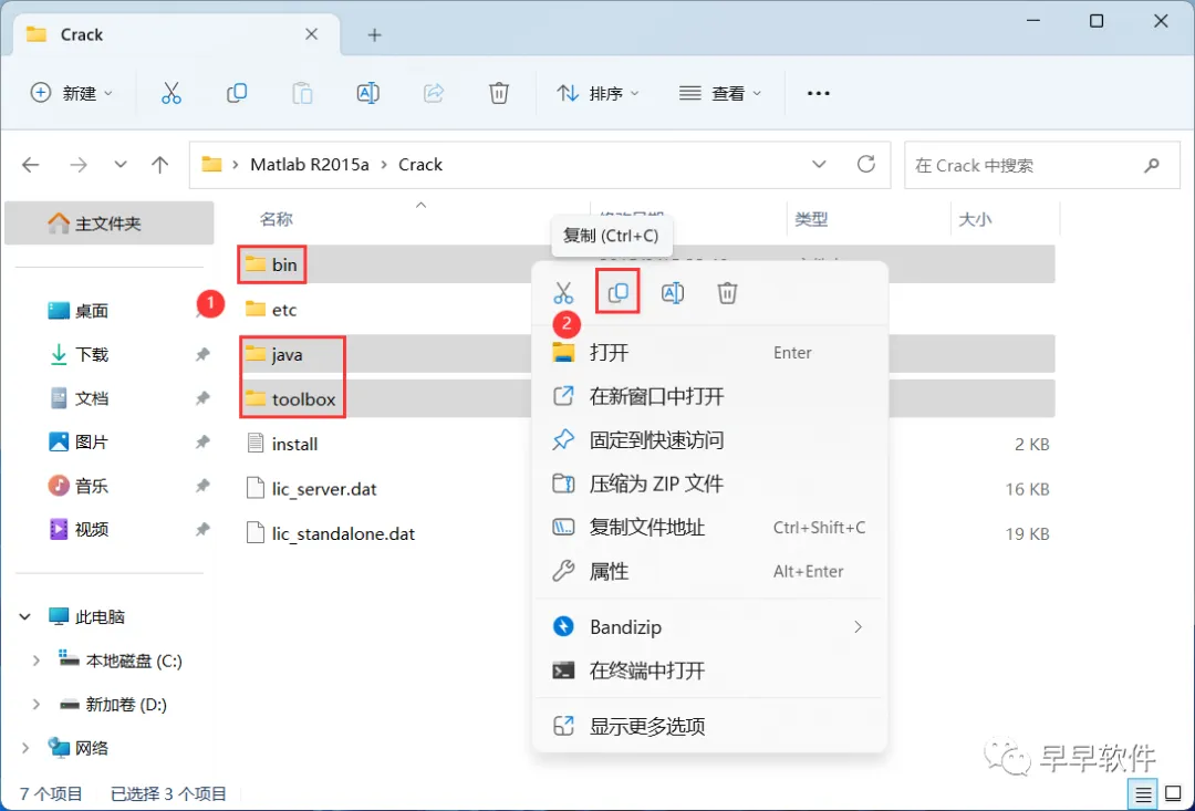 15、找到并选中【bin】、【java】和【toolbox】文件夹,再右键点击【复制按钮】