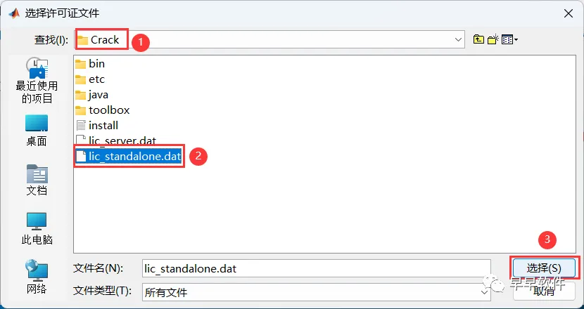 23、找到并选中安装包Crack文件夹下的【lic_standalone.dat】,再点击【选择】
