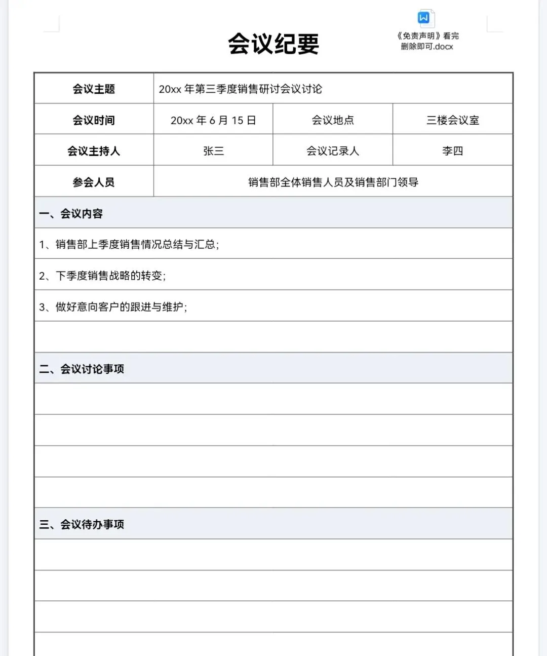 职场中,一份清晰、规范的会议纪要能让决策落地更高效,也能避免后续沟通偏差。但很多人却陷入“记录混乱、重点缺失、无人跟进”的困境——要么洋洋洒洒写满细节却抓不住核心,要么过于简略导致关键信息遗漏。